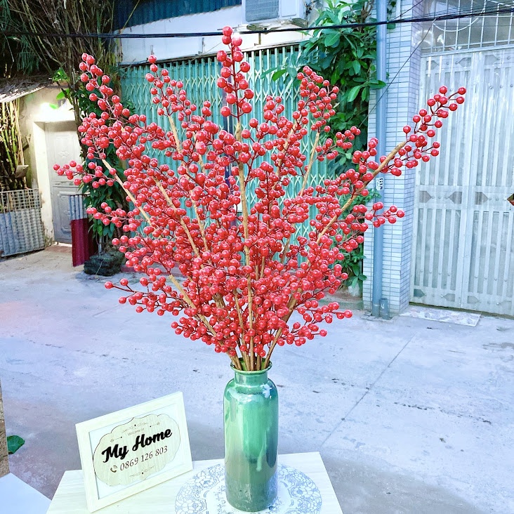 * Thân Cành dài được làm từ thép dẻo dễ uốn cong và tạo kiểu. Quả được làm bằng chất liệu cao su xốp, màu sắc đỏ tươi.