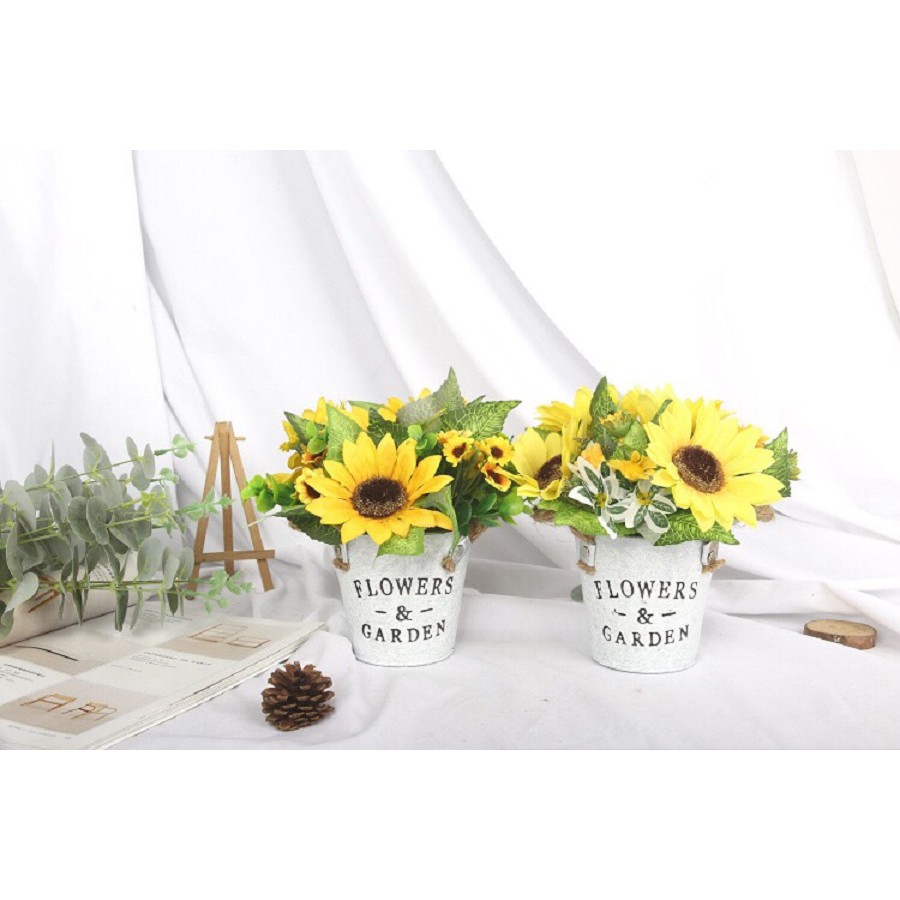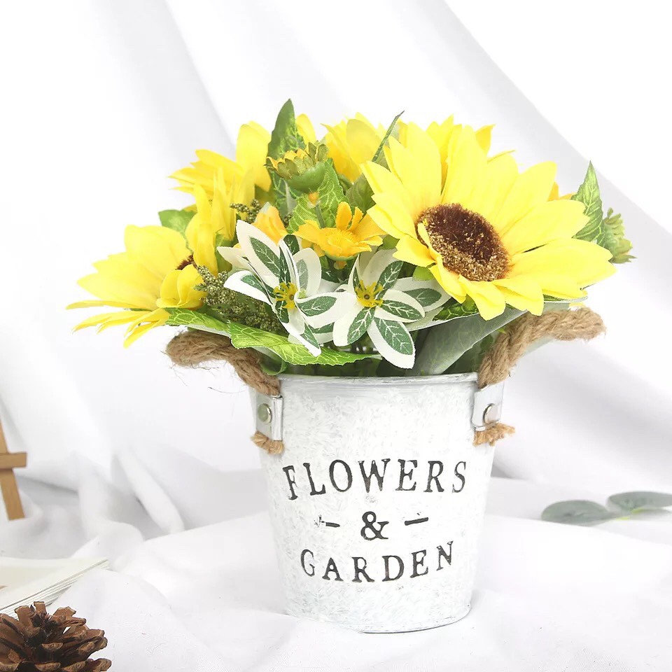 Hoa Giả - Chậu hình xô nước hoa Hướng Dương giả độc đáo