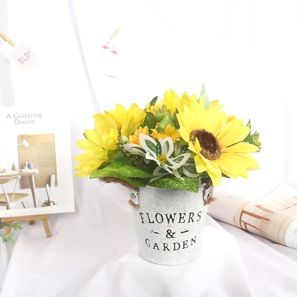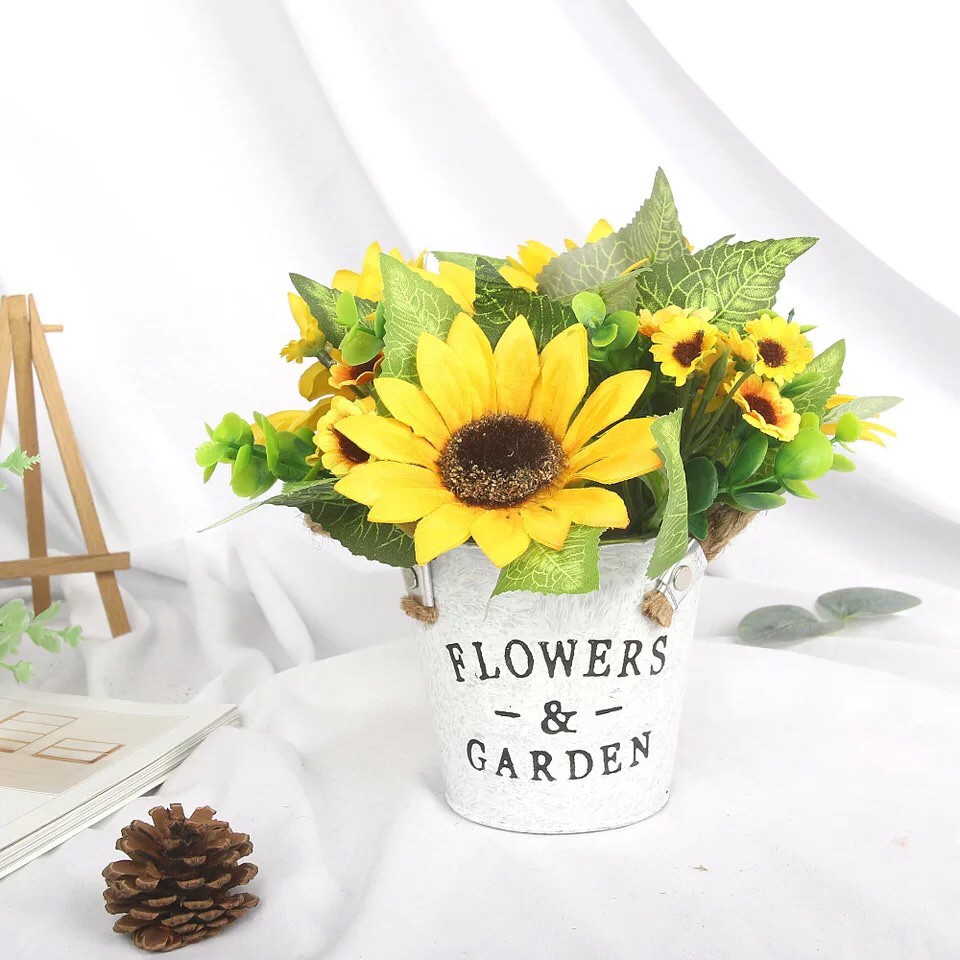 Nhà cửa & Đời sống > Trang trí nhà cửa > Hoa trang trí || Hoa Giả - Chậu hình xô nước hoa Hướng Dương giả độc đáoCòn hàng