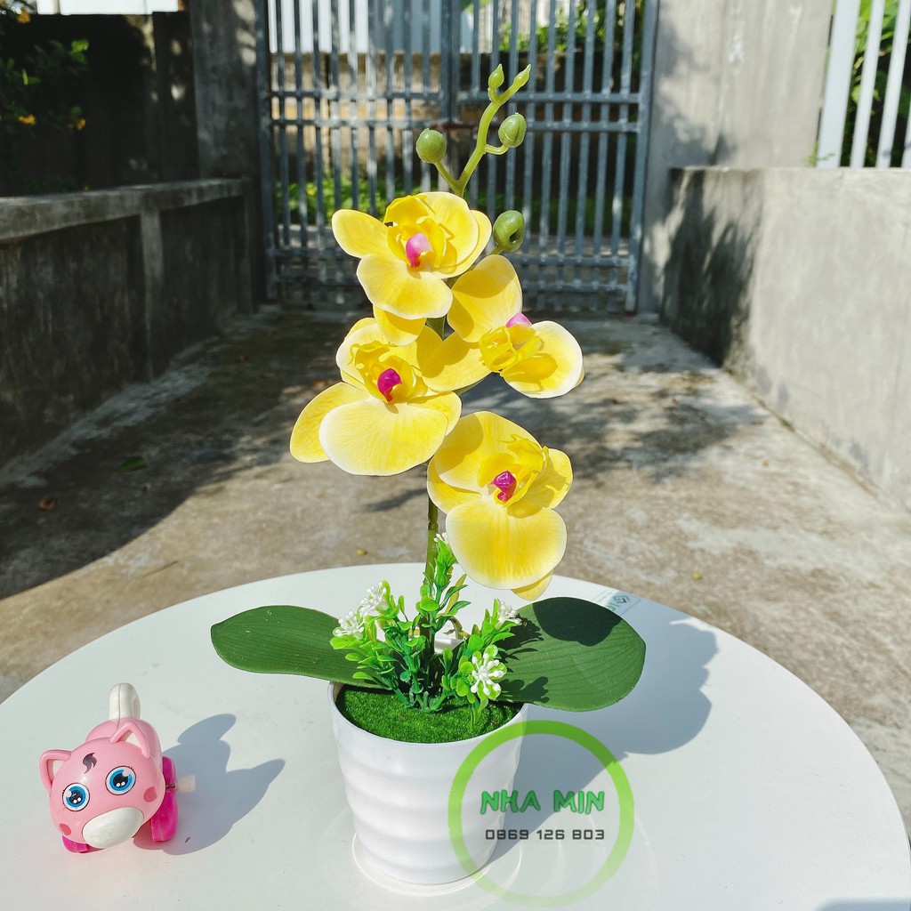 Cây hoa giả - Chậu hoa lan hồ điệp cao cấp cực chill - Hoa trang trí, để bàn