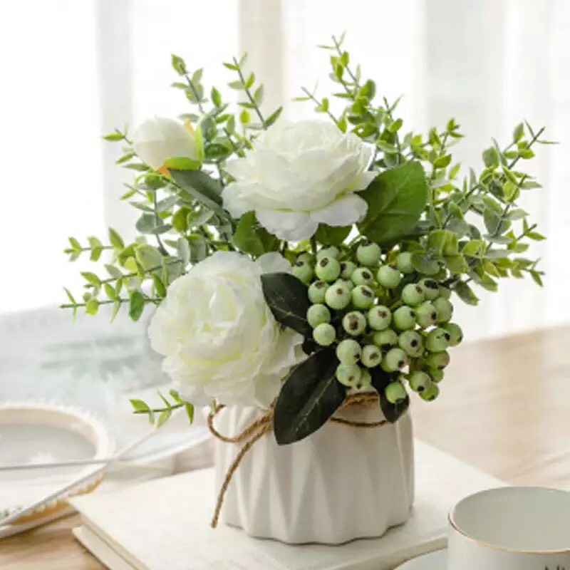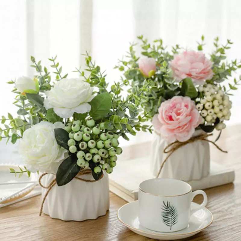 Hoa giả, Chậu Hoa Sứ Cắm Sẵn Để Bàn Độc Đáo Trang Trí Bàn Trà, Phòng Khách, Decor Chụp Ảnh Nhiều Mẫu JTK -001