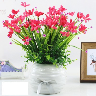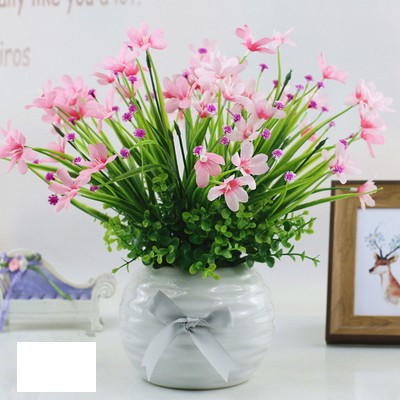 Hoa giả bằng chất liệu nhân tạo nên chậu hoa giả để bàn có thể được sử dụng lâu dài, bền đẹp với thời gian mà không cần chăm sóc nhé