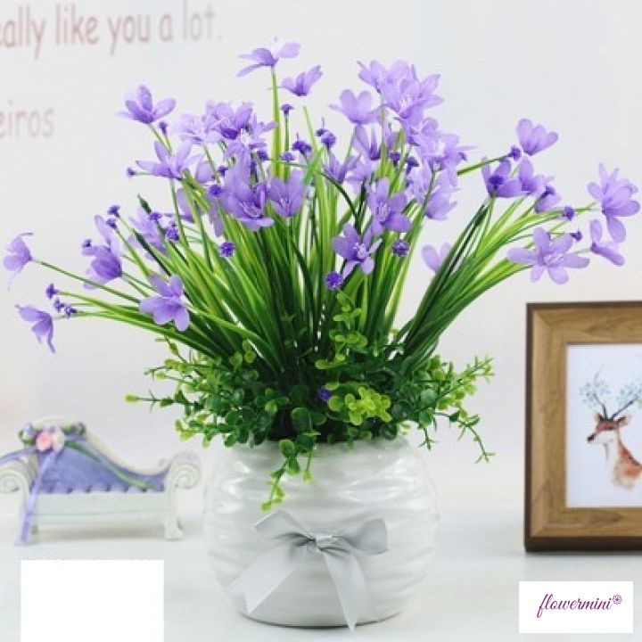 Chậu hoa giả mini còn trang trí ở các phòng ngủ, giúp bạn cảm thấy thoải mái, thư giãn trong không gian riêng của mình