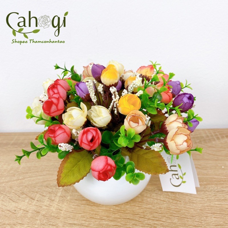 Giới thiệu Hoa Giả - Chậu Hồng Nụ Cắm Sẵn Mix Màu