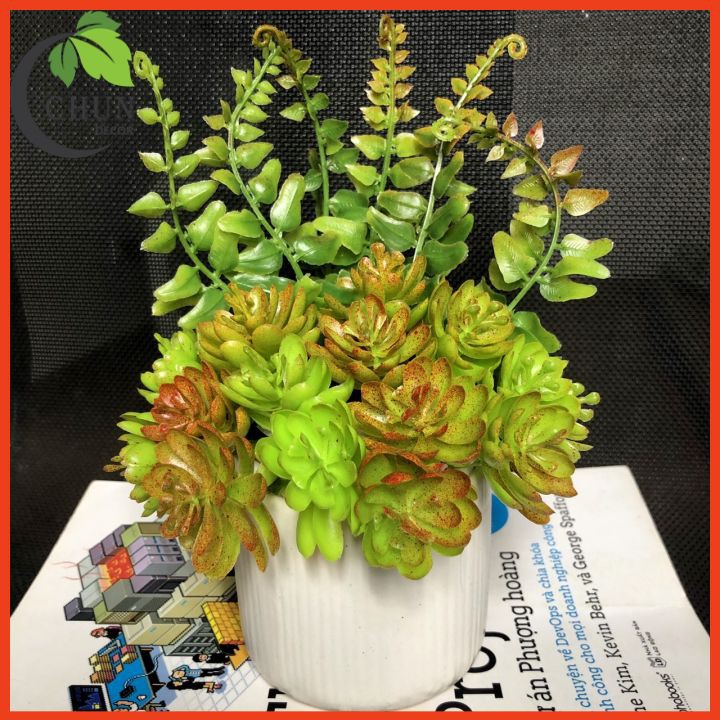 Hoa giả, chậu sen đá mini trang trí bàn làm việc, bàn học, giá sách, kệ tủ