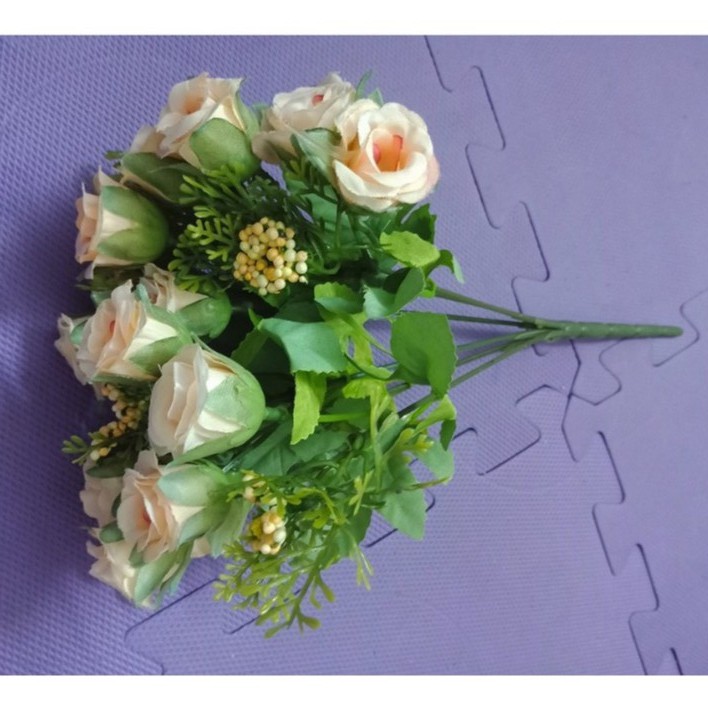 Hoa Giả, Chùm Hoa Hồng Nhí Giả Lụa được làm từ nhựa dẻo và vải lụa cộng xốp