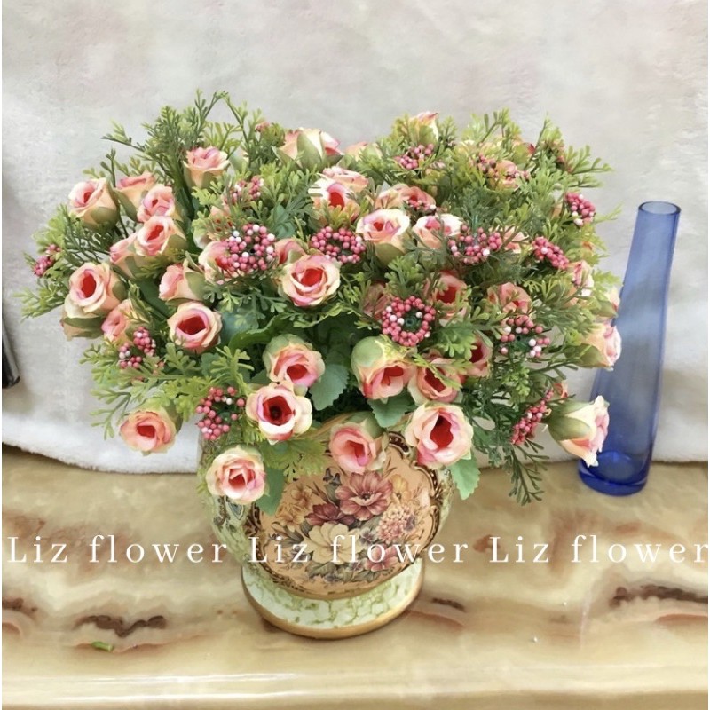 Giới thiệu Hoa Giả, Chùm Hoa Hồng Nhí Giả Lụa trang trí nhà cửa Lizflower [B6-D2]