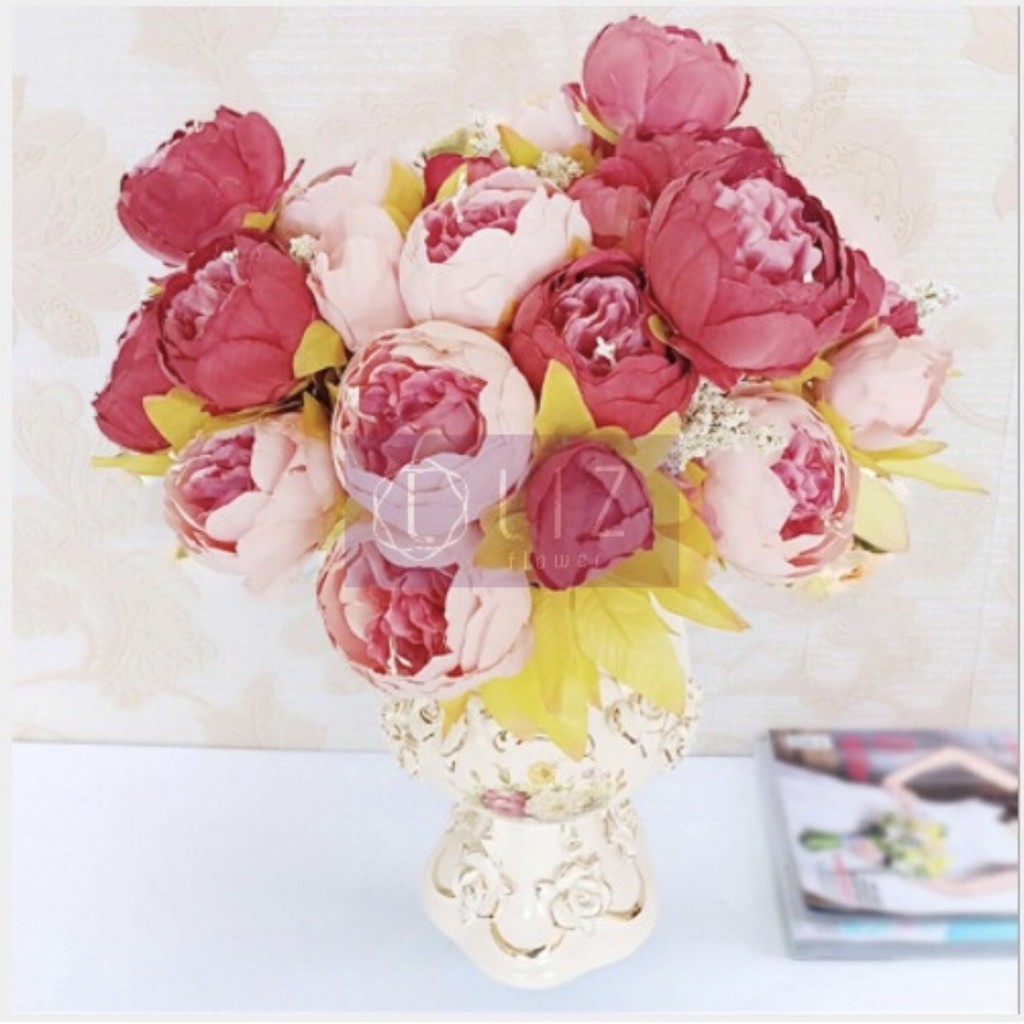 Nhà cửa & Đời sống > Trang trí nhà cửa > Hoa trang trí || Hoa Giả - Chùm Mẫu Đơn Cỡ Lớn Cao Cấp – hoa giả trang trí – Lizflower [B3-D2]Còn hàng