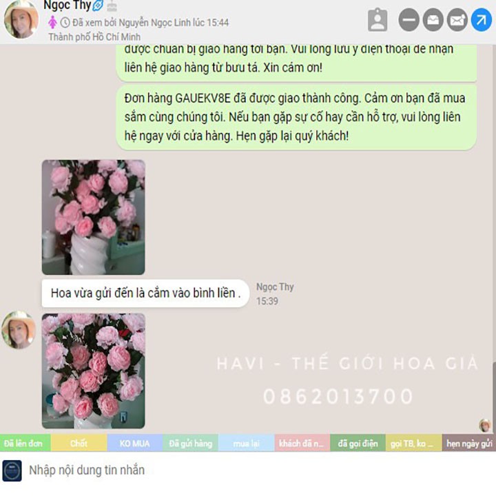 - Khách hàng có nhu cầu mua hoa với số lượng lớn có thể nhắn tin cho Shop để có những ưu đãi về giá.