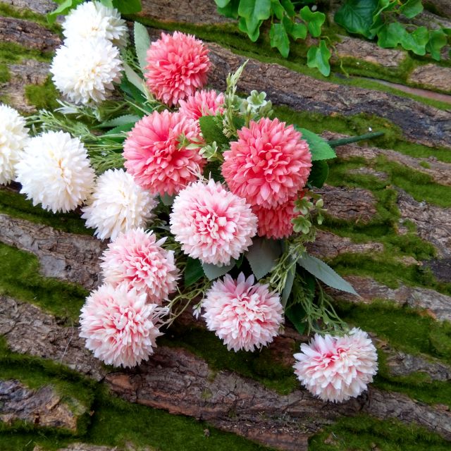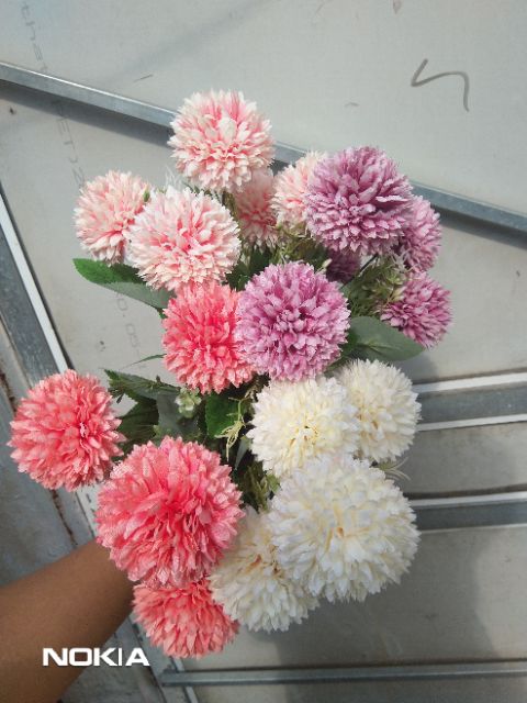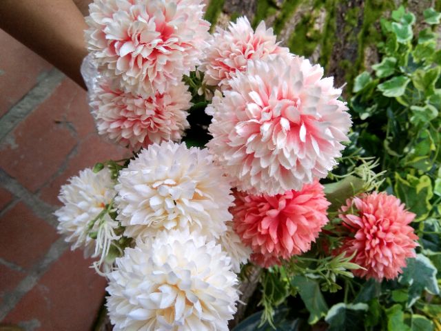 Hoa giả trang trí đang là xu hướng trang trí nội thất trong cuộc sống hiện đại.Cúc pingpong chất liệu vải, cành nhựa lõi thép dễ uốn, tạo dáng.