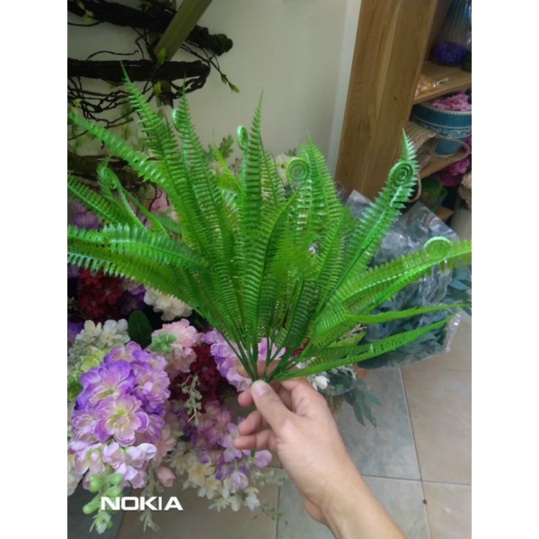 Cụm lá dương sỉ nhựa, cao khoảng 30cm. 1 cụm gồm nhiều lá và có vòi nhìn rất tự nhiênCụm dương sỉ dùng trang trí nhà cửa, tường cỏ nhân tạo, cắm điểm cho các loại hoa giả, hoa khô...