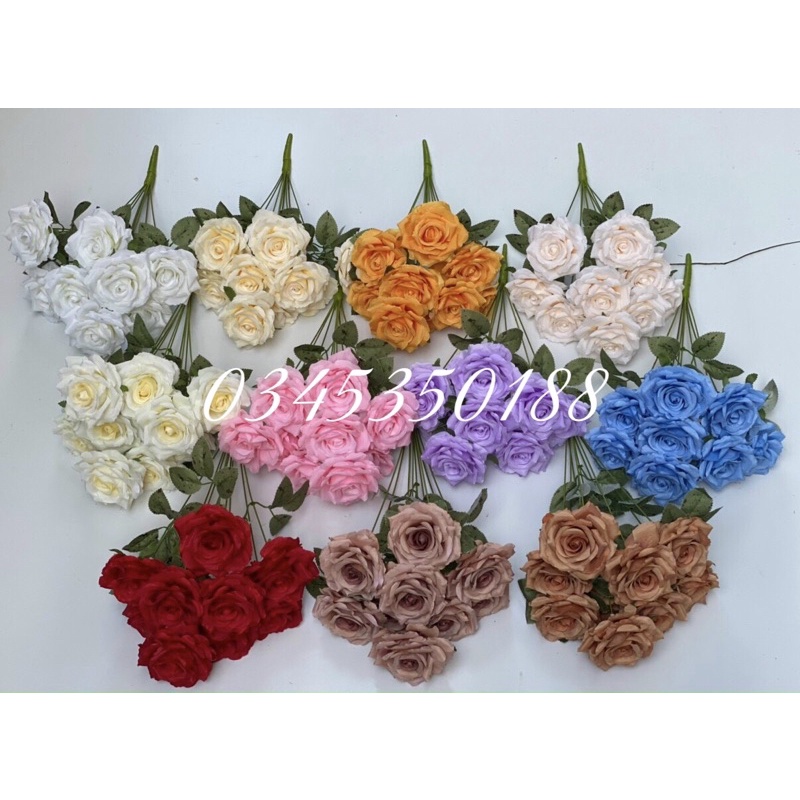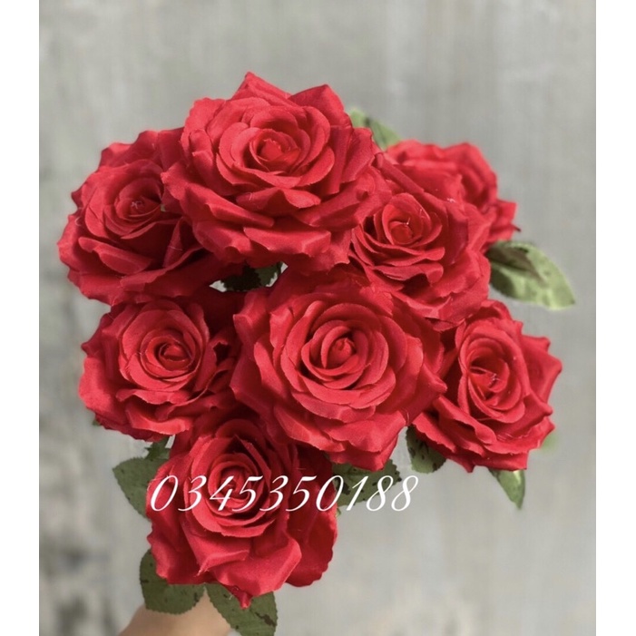 Giới thiệu Hoa giả/ Cụm Hồng gấm 9 bông cao cấp