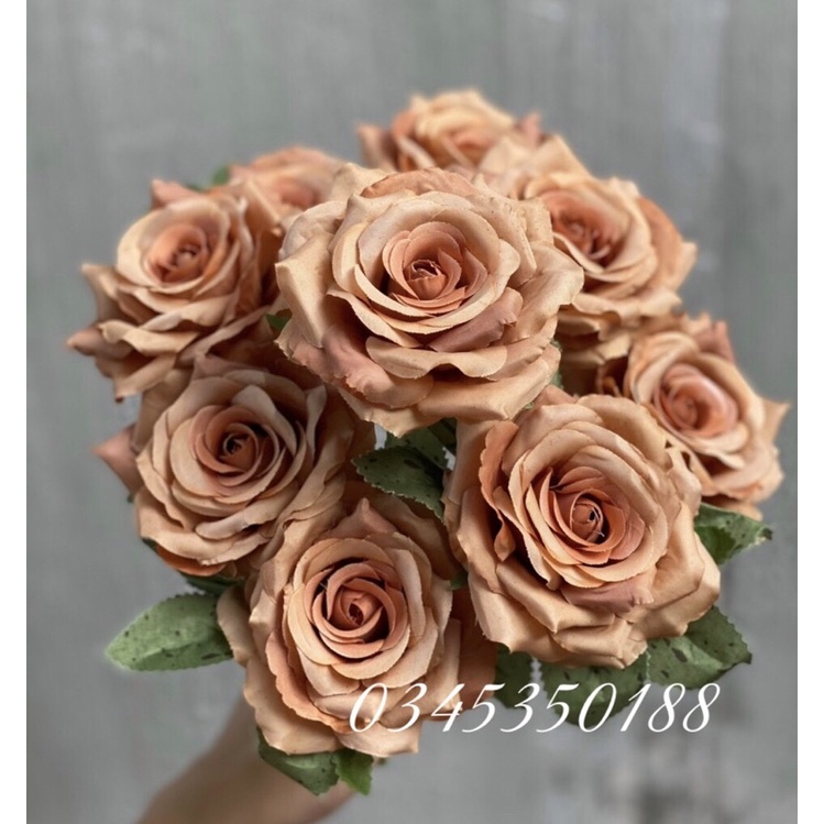 Hoa giả/ Cụm Hồng gấm 9 bông cao cấp