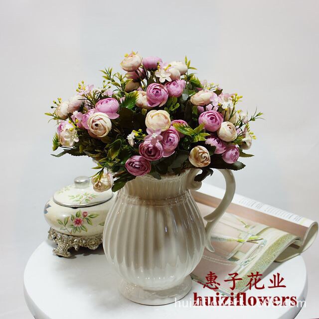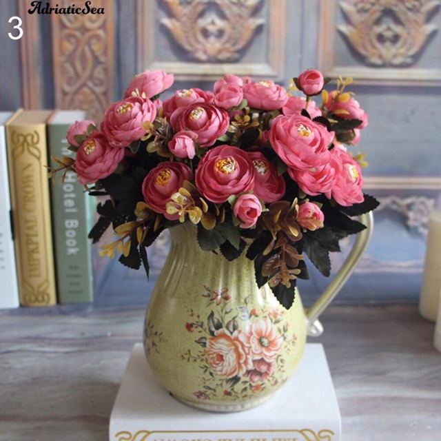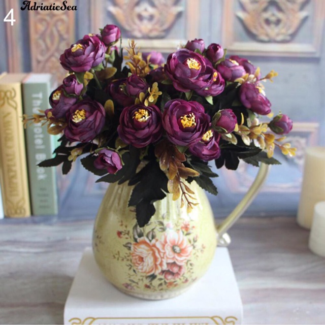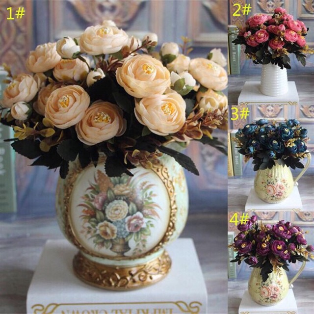 Nhà cửa & Đời sống > Trang trí nhà cửa > Hoa trang trí || Hoa giả - cụm hồng trà phong cách cổ điển châu Âu sang trọngCòn hàng