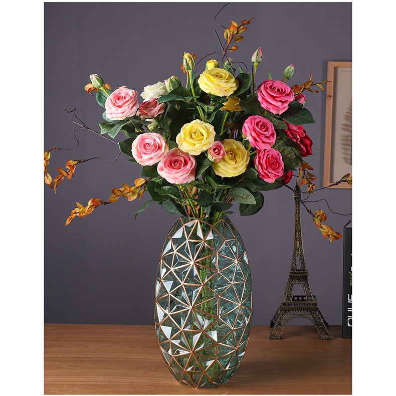 Hoa Giả FREESHIP Hoa Hồng Giả Cành Dài 7 Bông