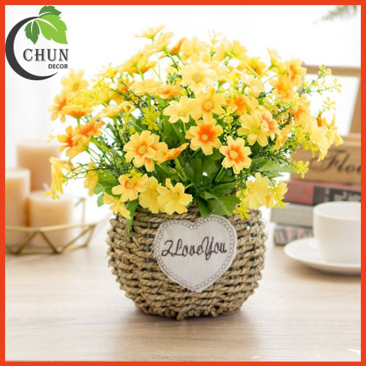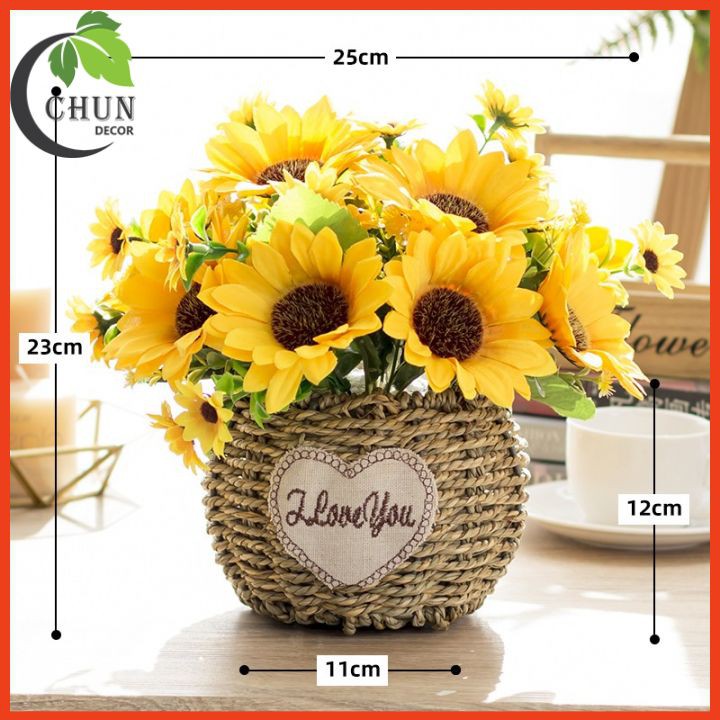 - giỏ hoa nhân tạo có đa dạng mẫu cho bạn lựa chọn: hoa hướng dương, nụ hồng, hoa thủy tiên, cây lá điểm, hoa hồng nhí...