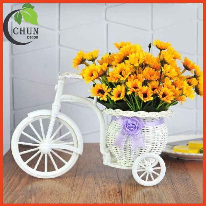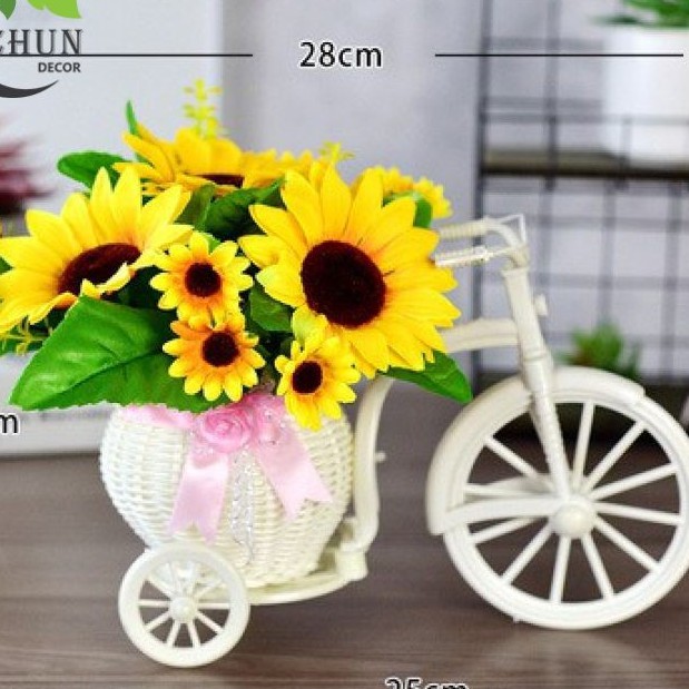 Hoa giả - Giỏ xe đạp hoa hướng dương nhiều mẫu cao 22cm để bàn,kệ tủ trang trí nhà cửa