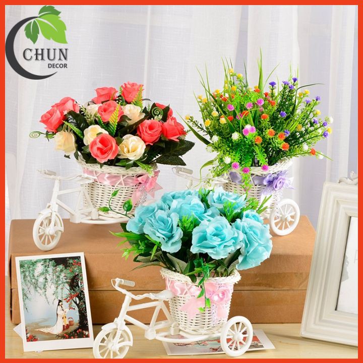 Giới thiệu Hoa giả - Giỏ xe đạp hoa lụa nhiều mẫu cao 22cm để bàn,kệ tủ trang trí nhà cửa
