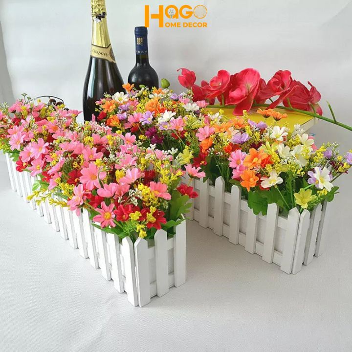 Hoa giả,Hàng rào gỗ,hàng rào hoa cỏ dài 50cm cắm nhiều mẫu trang trí nhà, decor
