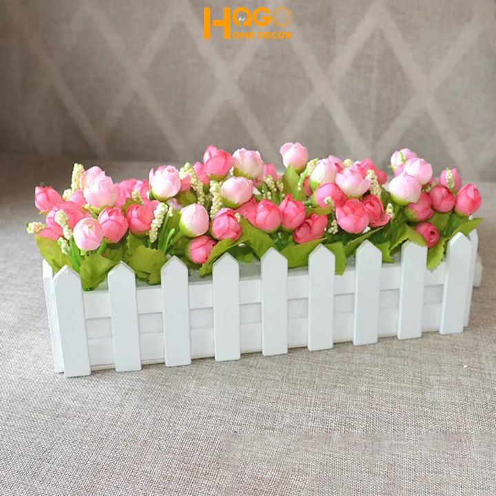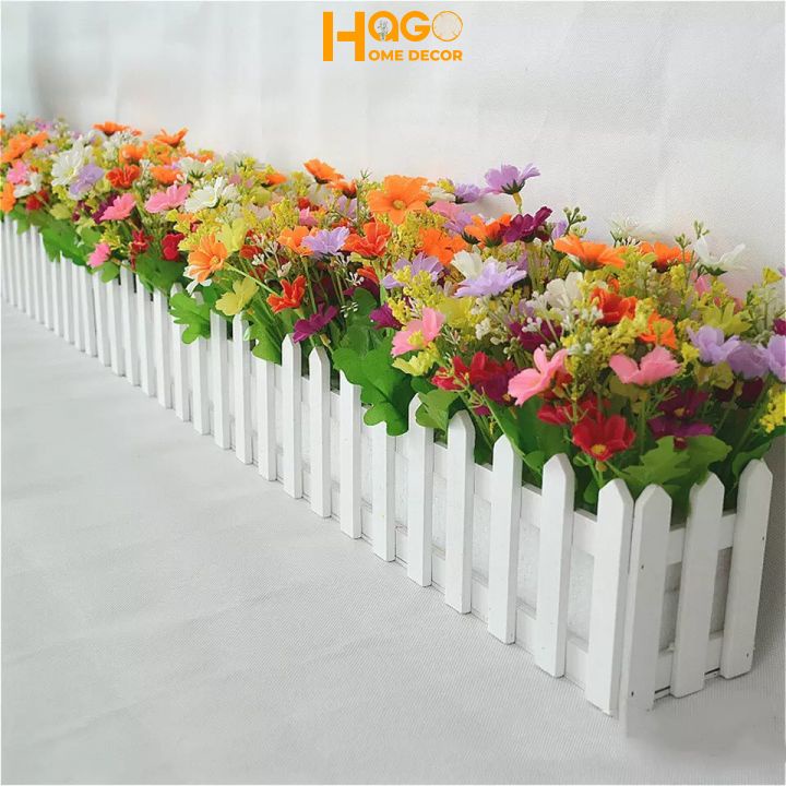 Nếu như những hàng rào hoa thật tốn công chăm sóc với chi phí cao thí những hàng rào hoa cỏ được làm từ chất liệu gỗ cắm cùng các loại hoa cỏ sinh động sẽ giúp không gian của nhà bạn thêm phần sinh động, mới mẻ mà không mất nhiều chi phí. hàng rào hoa cỏ cũng được sử dụng để trang trí công ty, văn phòng, studio chụp ảnh,...Ở Hago những hàng rào được làm chất liệu gỗ chắc chắn, hoa cỏ màu sắc bắt mắt tươi tắn được cắm một cách tỉ mĩ chắc chắn sẽ làm hài lòng quý khách hàng yêu quý.