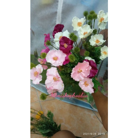 Nhà cửa & Đời sống > Trang trí nhà cửa > Hoa trang trí || Hoa giả - Hoa anh túc bó 8 bông điểm cỏ- dài 60cmCòn hàng