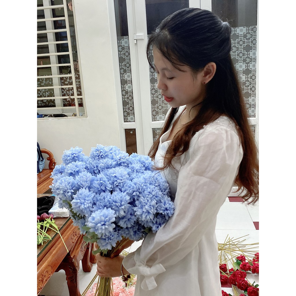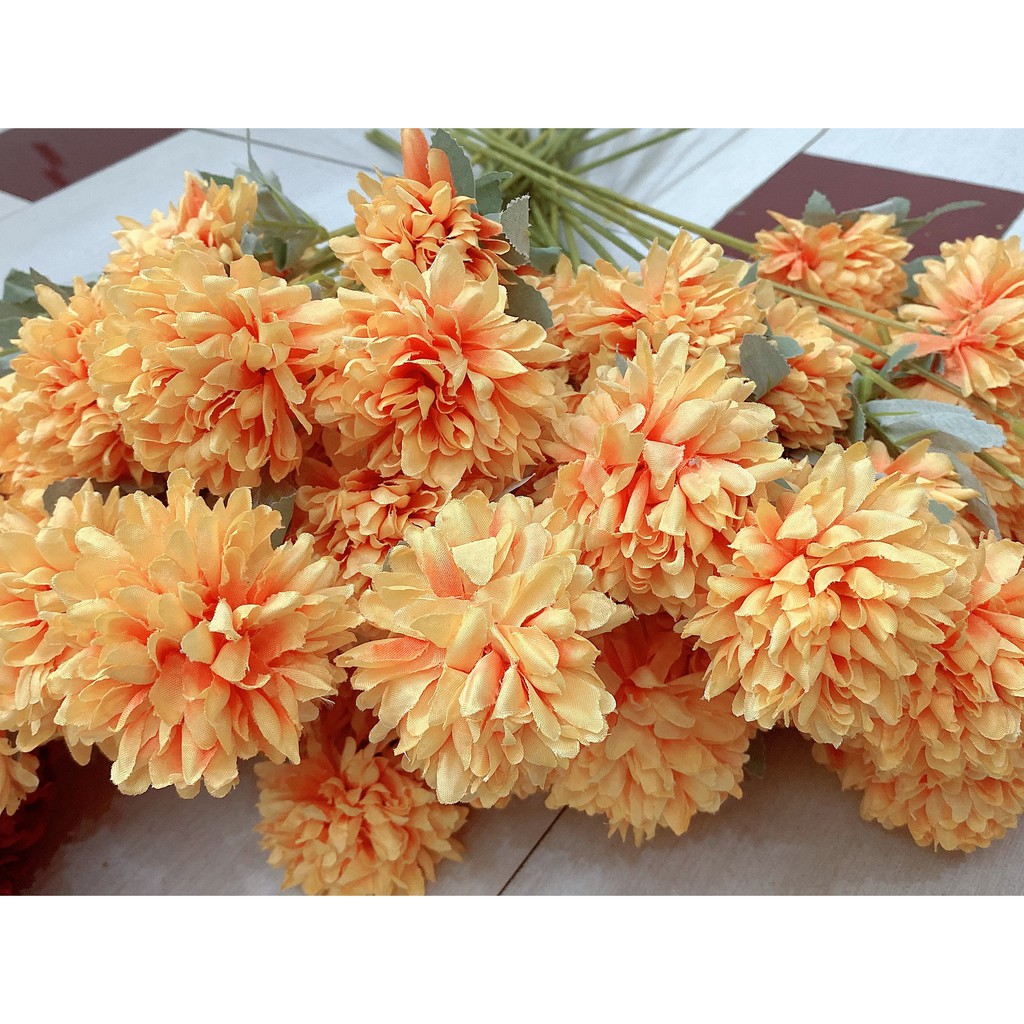 ✅ Hoa làm bằng chất liệu vải lụa cao cấp mềm mại, bông hoa được xếp nhiều lớp cánh xòe bồng rất đẹp.Thiết kế lá có vân nhìn như lá thật. Cành hoa dài 57cm, bông hoa xòe 11cm.