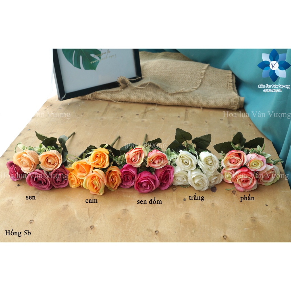 Giới thiệu Hoa Giả Hoa Hồng 5 Bông Lụa Trang Trí
