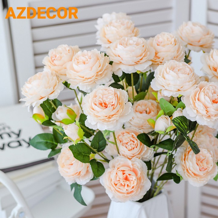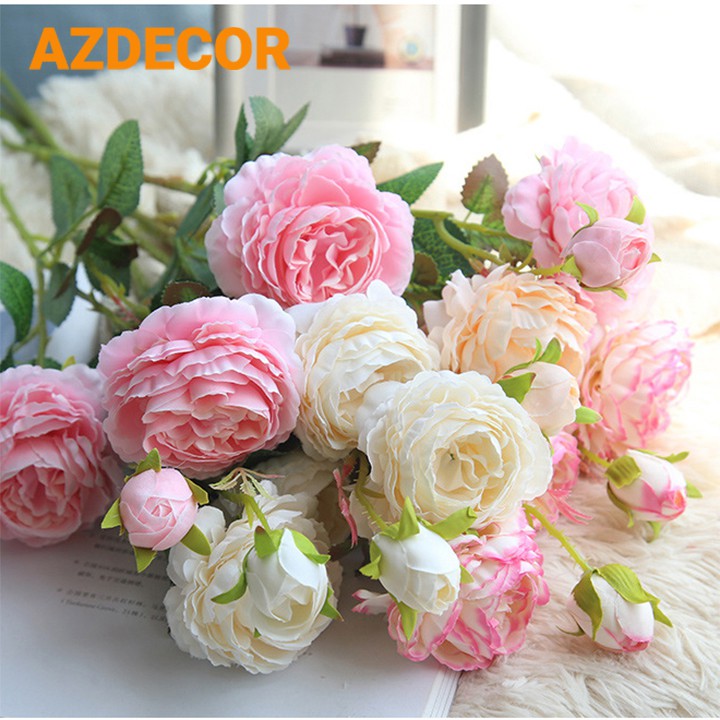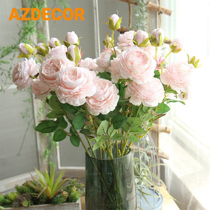 ✔️ Cành hoa giả gồm 3 bông (2 to 1 nhỏ). Chiều dài 1 cành là 61cm, chiều dài bông hoa là 5.5cm, đường kính 7-9cm.