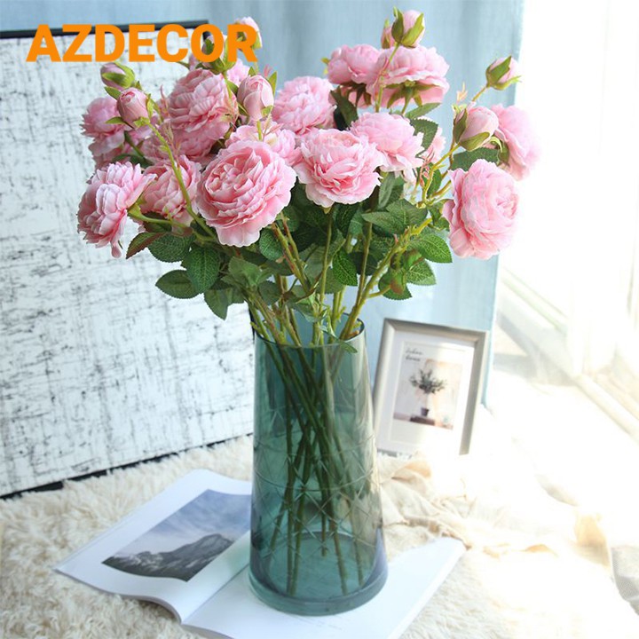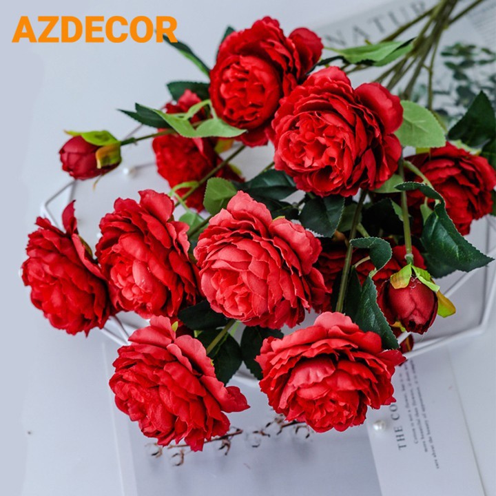 HOA GIẢ - HOA HỒNG CAO CẤP 1 CÀNH 3 BÔNG LỚN