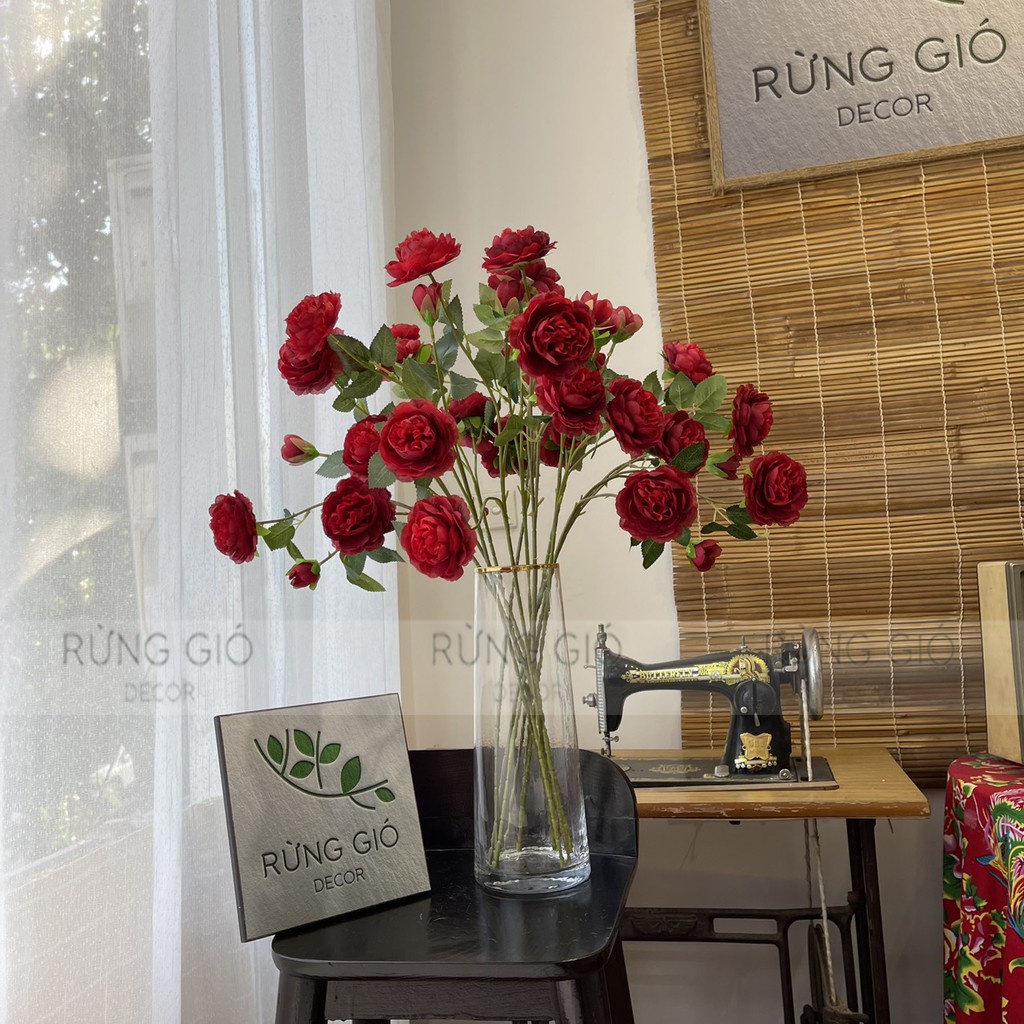 ✔️ Cành hoa giả gồm 3 bông (2 to 1 nụ). Chiều dài 1 cành là 61cm, chiều dài bông hoa là 5.5cm, đường kính 7-9cm.
