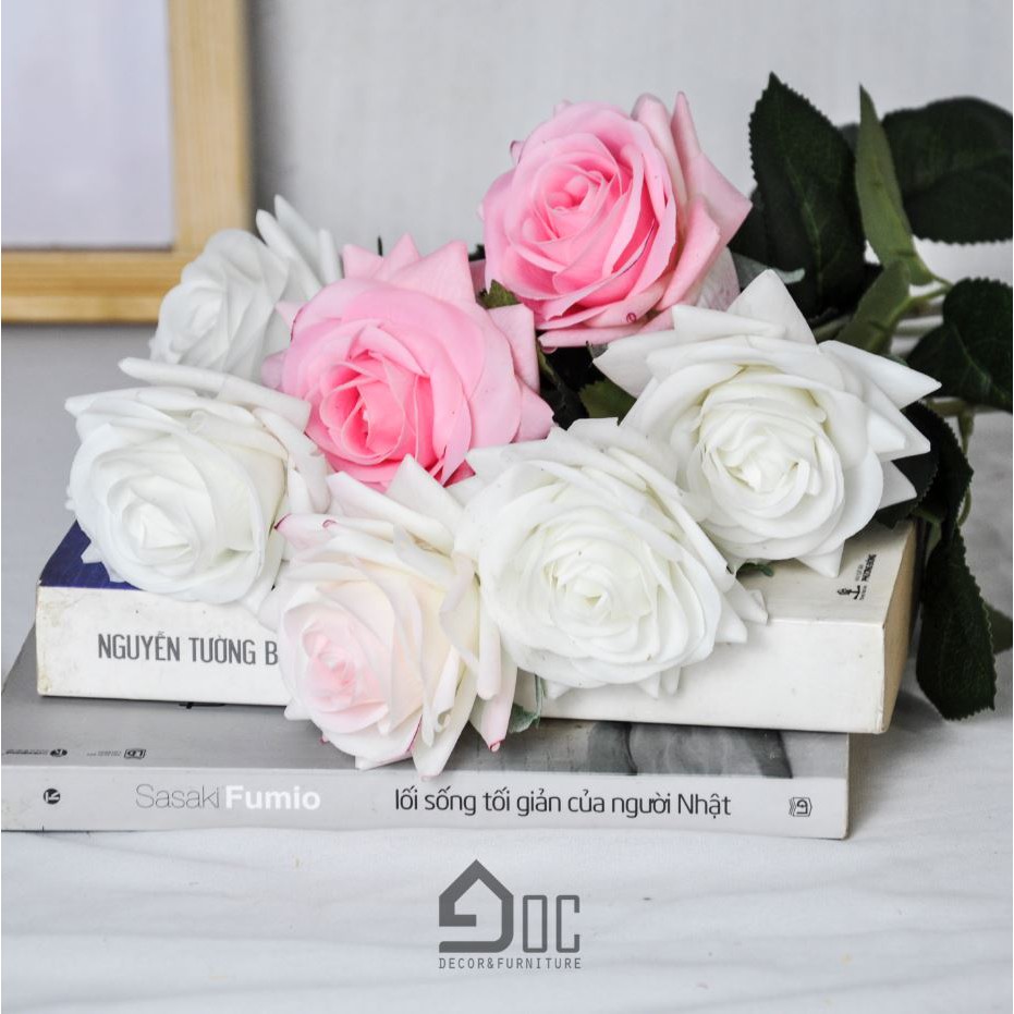 Sản phẩm hoa hồng giả thích hợp cắm với bình thủy tinh, bình gốm hay đơn giản làm chụp ảnh cá nhân rất hiện đại