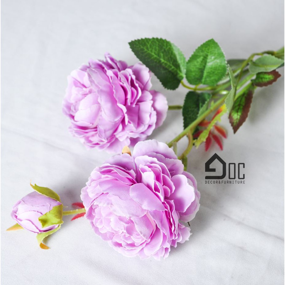 Hoa giả, hoa hồng mẫu đơn 2 bông 1 nụ cao cấp loại 1 Góc decor