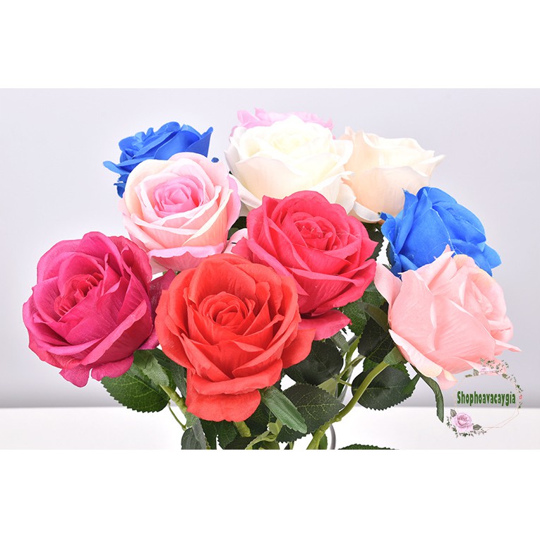 Shophoavacaygia mến chào quý khách!HOA GIẢ TRANG TRÍ - HOA HỒNG NHUNG CAO CẤP LOẠI ĐẸP CÀNH 1 BÔNG LỚN CHIỀU DÀI CÀNH 50CM