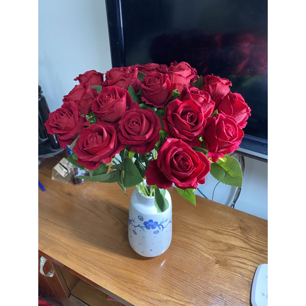 Nhà cửa & Đời sống > Trang trí nhà cửa > Hoa trang trí || Hoa giả, Hoa hồng NHUNG loại đẹp 1 bông size Cao 51cm bông to 6cm trang trí nội thất,decor, sự kiện-Lụa trà quý tộcCòn hàng