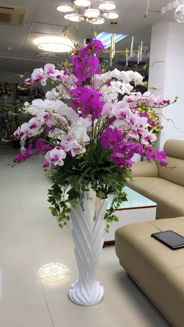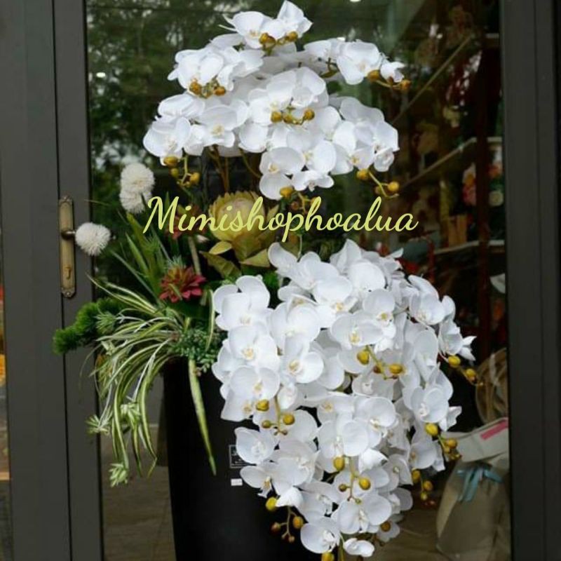 Hoa lan giả chất liệu cao su, màu sắc tự nhiên như hoa thật.1 cành dài khoảng 90cm, có 9 bông hoa
