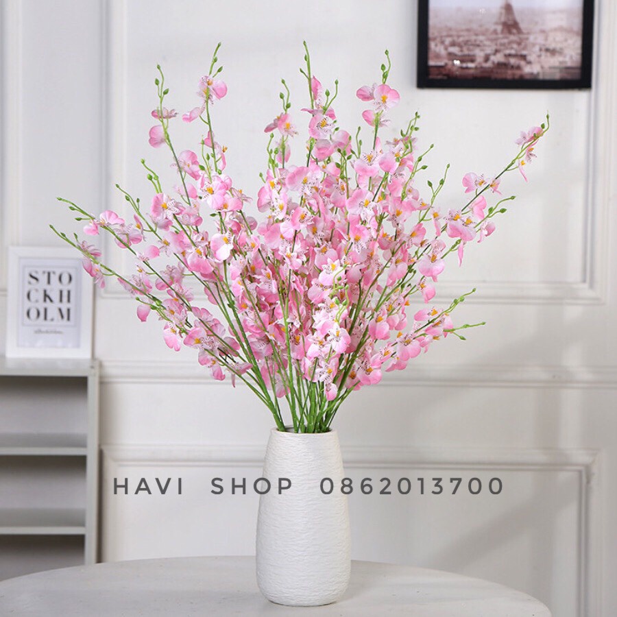 Giới thiệu Hoa giả - Hoa lan vũ nữ Lucas 1 mét, một cành 8 nhánh trang trí đơn giản, tinh tế, quý phái