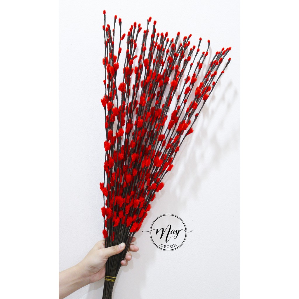 Chất liệu nụ tầm xuân kẽm nhung đỏ , cành kẽm quấn sáp