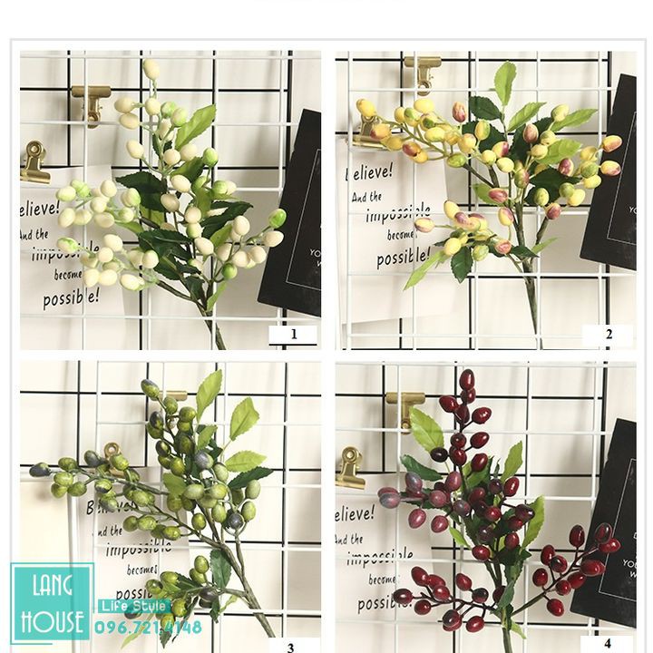 Giới thiệu Hoa Giả Hoa Lụa - CÀNH ĐIỂM QUẢ BERRY Loại 1 Giống Thật