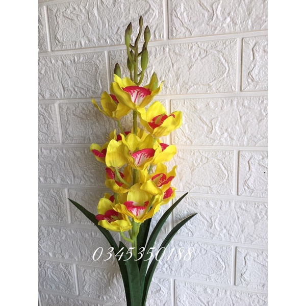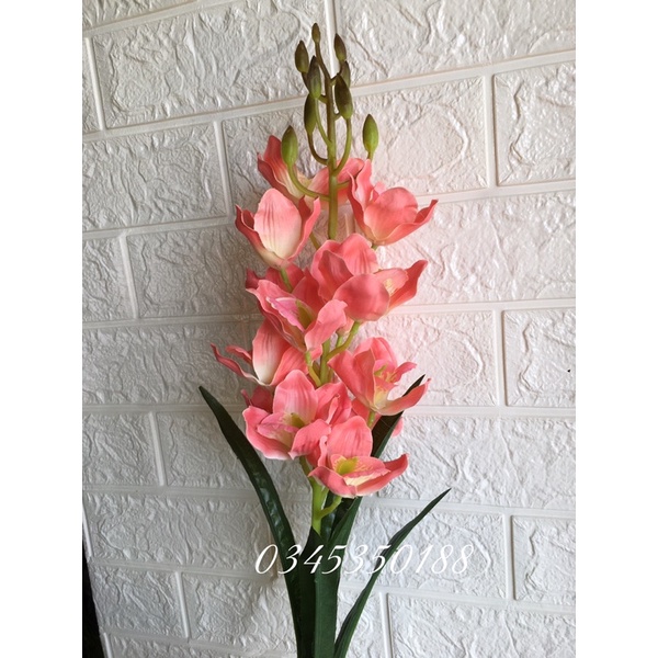 Hoa giả hoa lụa/ cành hoa địa Lan 13 bông cành dài 80 cm decor siêu đẹp