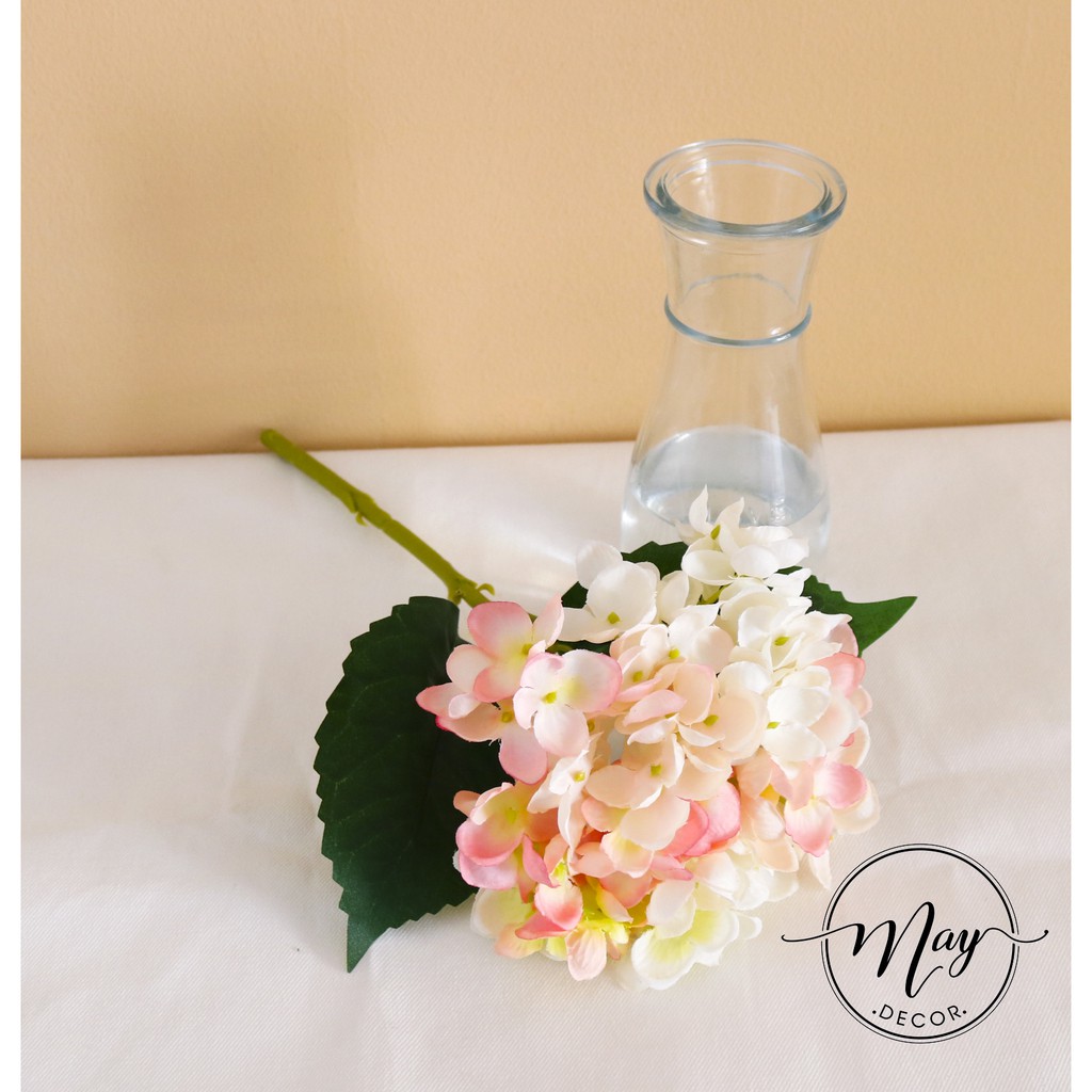 Nhà cửa & Đời sống > Trang trí nhà cửa > Bình trang trí || Hoa giả, Hoa lụa, Cành Hoa tú cầu kèm lọ thủy tinh thắt eoCòn hàng
