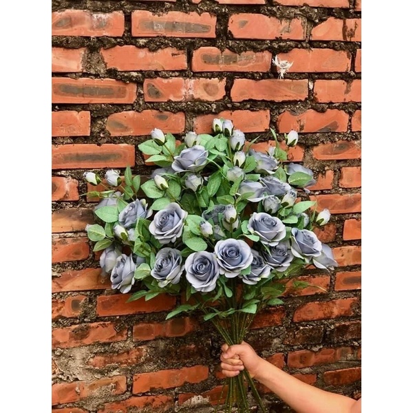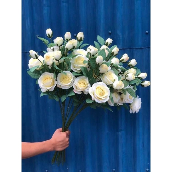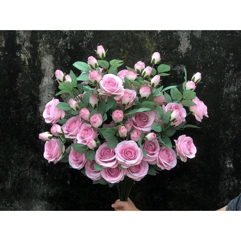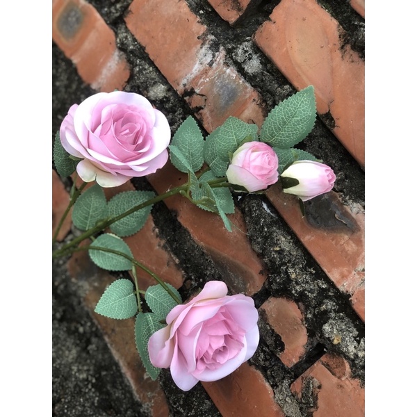 ✔️ Cành hoa giả gồm 2 bông và 2 nụ, bông size to, đường kính bông ~ 10 cm. Chiều dài mỗi cành hồng 70 cm