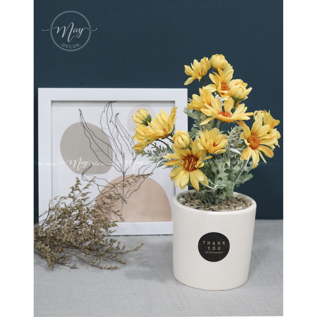 Hoa giả, Hoa lụa, Chậu cúc Chi để bàn xinh xắn lọ trụ 11cm