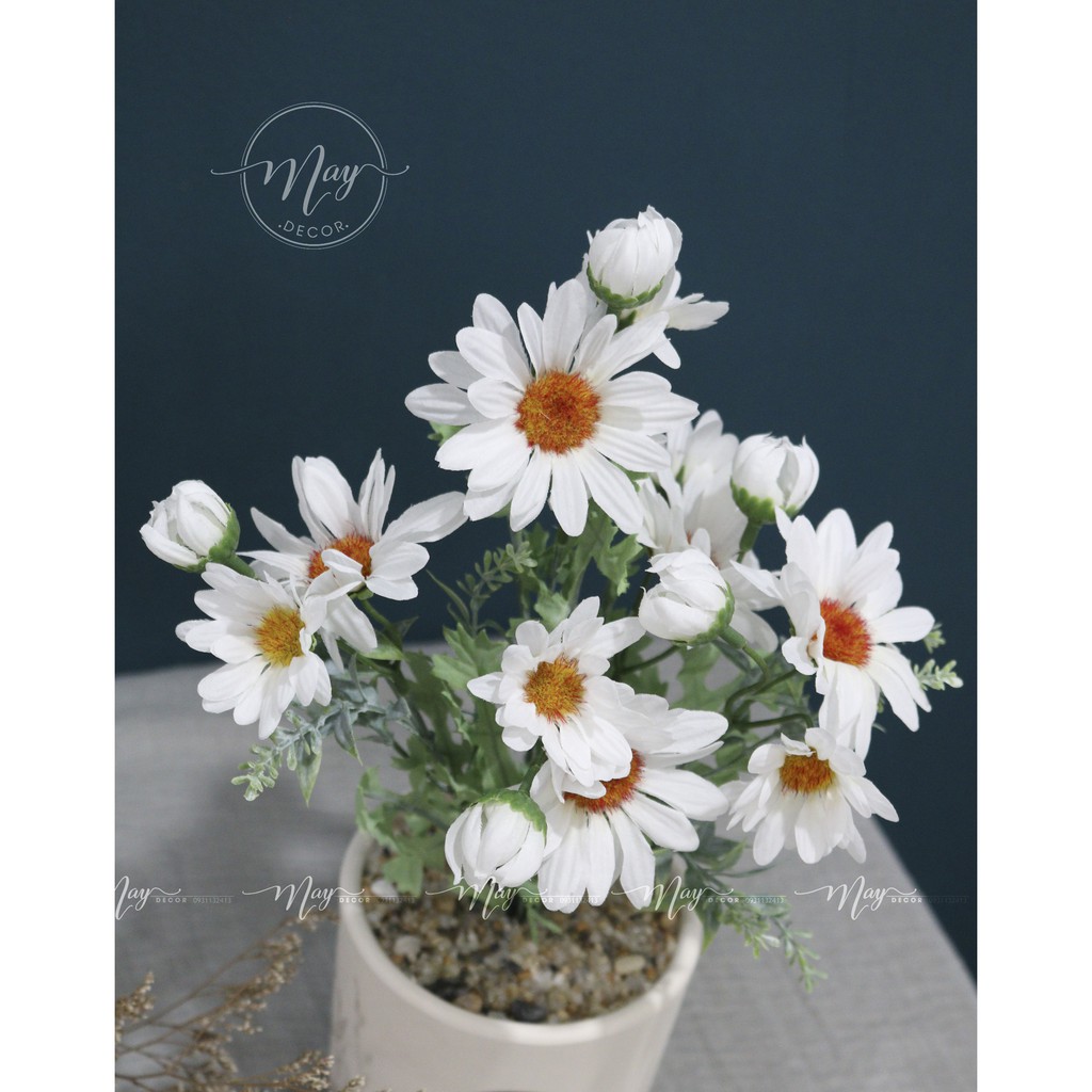 Giới thiệu Hoa giả, Hoa lụa, Chậu cúc Chi để bàn xinh xắn lọ trụ 11cm