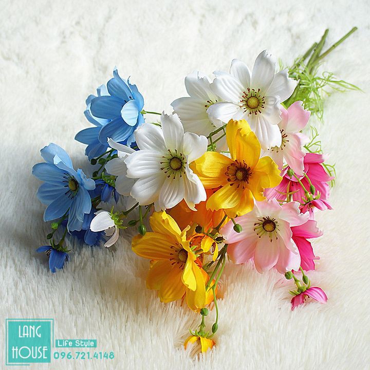 Giới thiệu Hoa Giả Hoa Lụa - HOA CÚC SAO COSMOS Loại 1 - 1 Cành 6 Bông