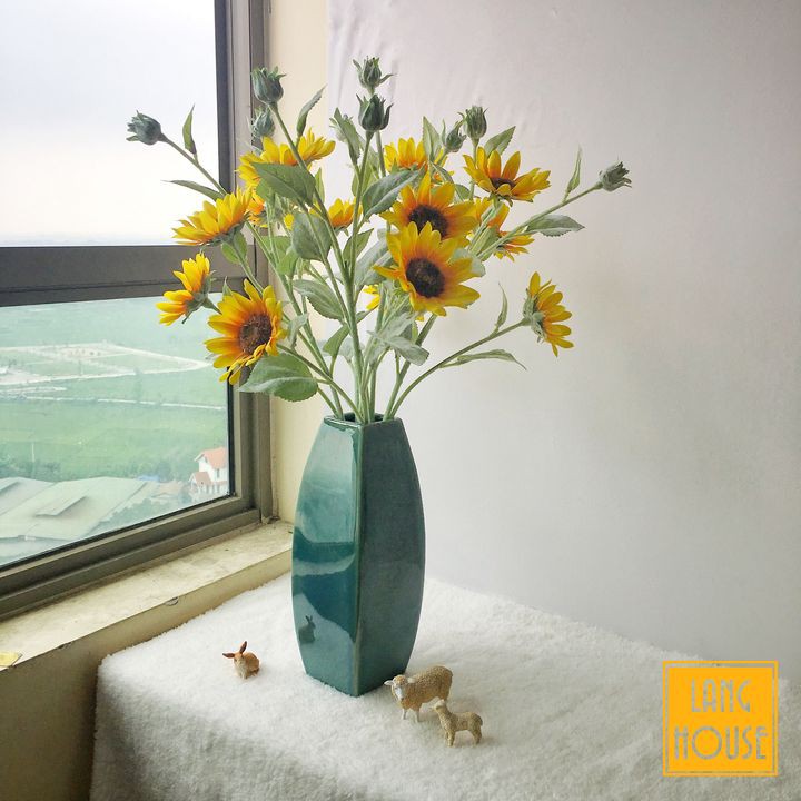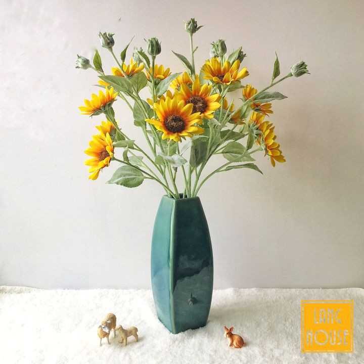 Giới thiệu Hoa Giả Hoa Lụa - HOA HƯỚNG DƯƠNG CAO CẤP 1 Cành 3 Bông Dài 65cm