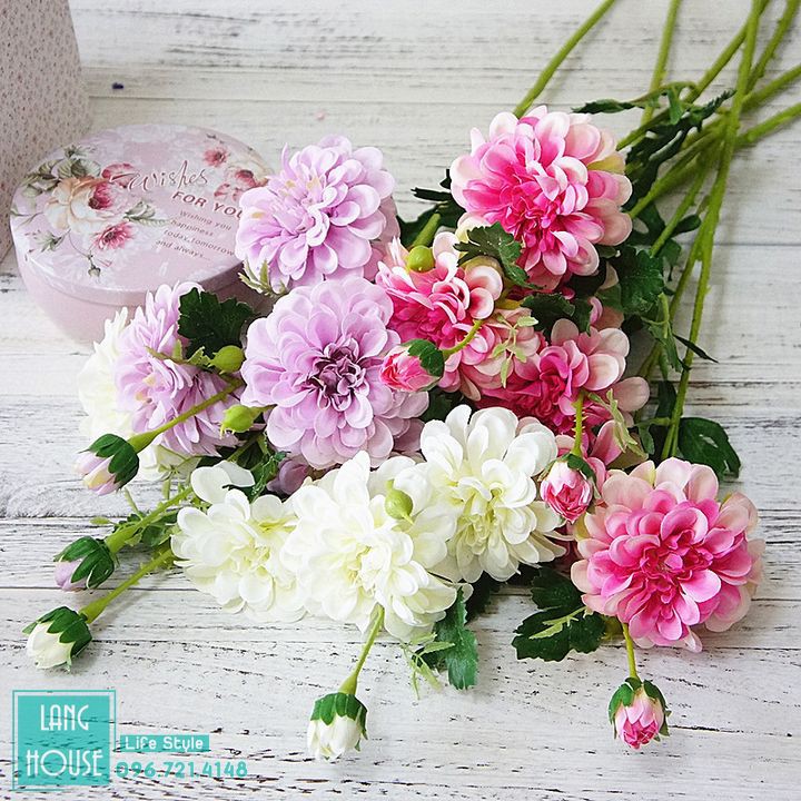Giới thiệu Hoa Giả Hoa Lụa - HOA THƯỢC DƯỢC POMPON Loại 1 - 1 Cành 2 Bông
