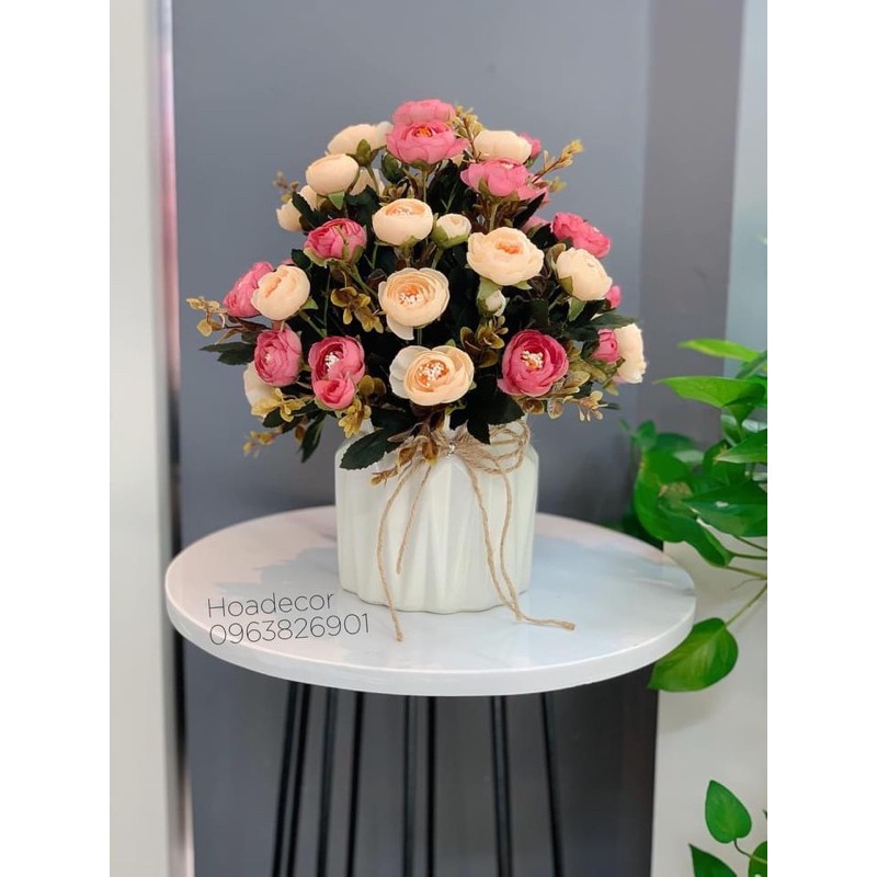 Hoa giả - hoa lụa : lọ hoa hồng trà vintage cắm sẵn