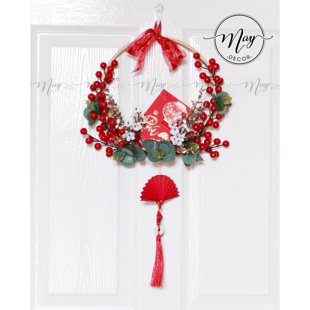 Vòng hoa treo trang trí TẾT may mắnHoa treo cửa ngày tết ngoài công dụng trang trí làm đẹp thì một điều thú vị nữa là hoa treo cửa còn giúp gia chủ thêm tài lộc, đón may mắn và hạnh phúc trong năm mới.