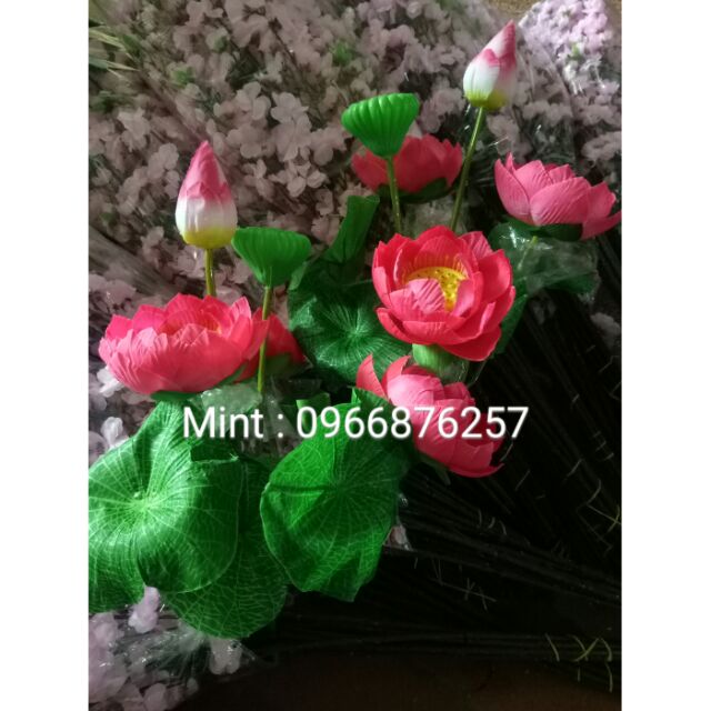 Hoa sen loại in vân cao cấp khách nhé loại thường không có vân, lá trơn, mình bán cả 2 loại nhé- Chiều cao ~40cm