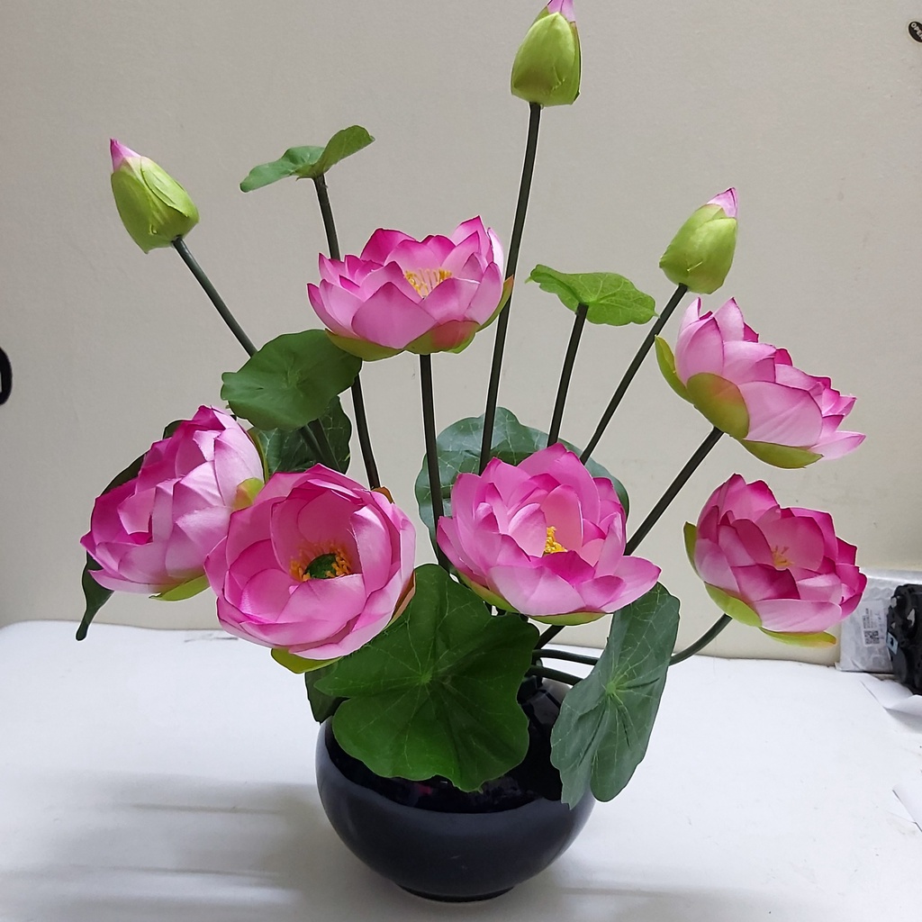 Hoa sen giả đẹp y thật trang trí phòng khách, bục phát biểu... vô cùng sang trọng và tinh khiết hoàn toàn thay thế sen thật sử dụng quanh năm 4 mùaTHông tin sản phẩm: